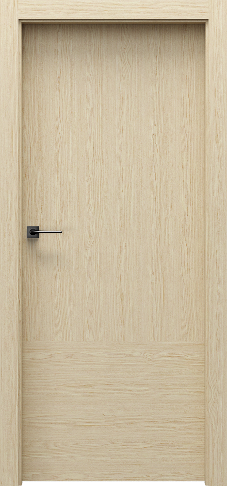 Минималистична врата от линията Basic Home с естествен фурнир, разпределен в характерни геометрични полета. Налична в три варианта - стандартен, с релеф и с декоративни инкрустации.